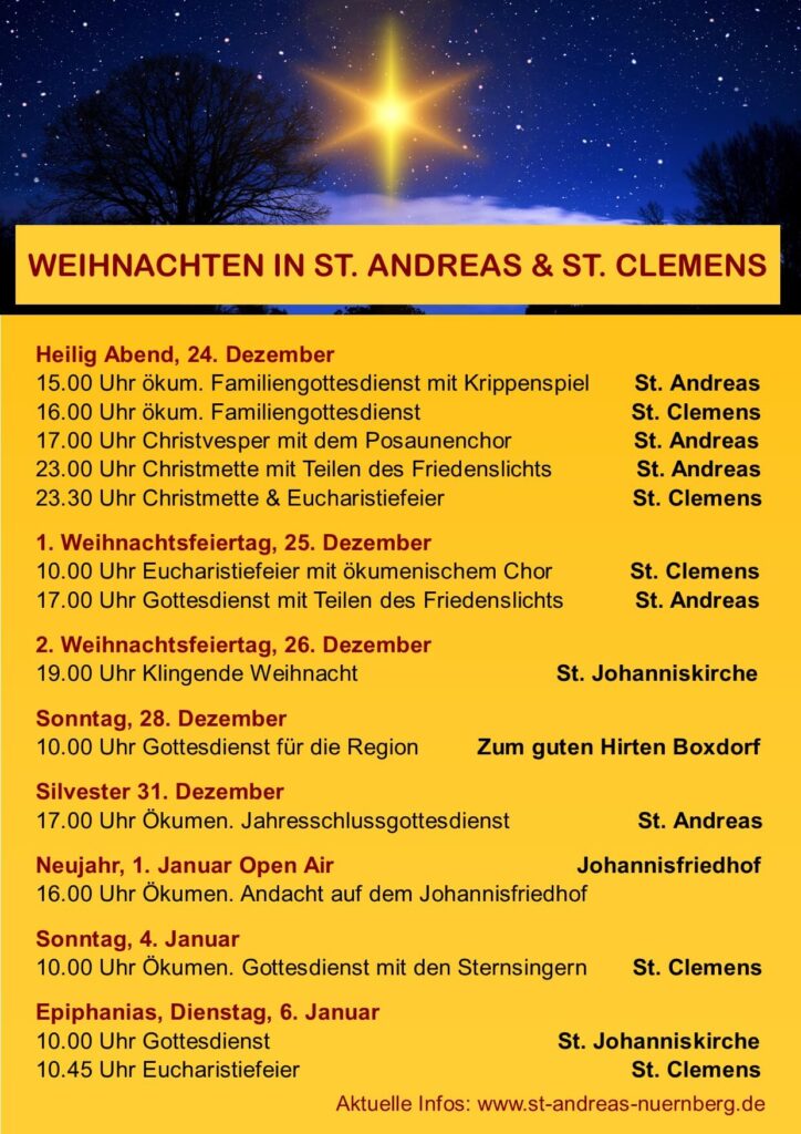 Wir laden herzlich ein zu den Gottesdiensten an und um Weihnachten in St. Andreas & St. Clemens.